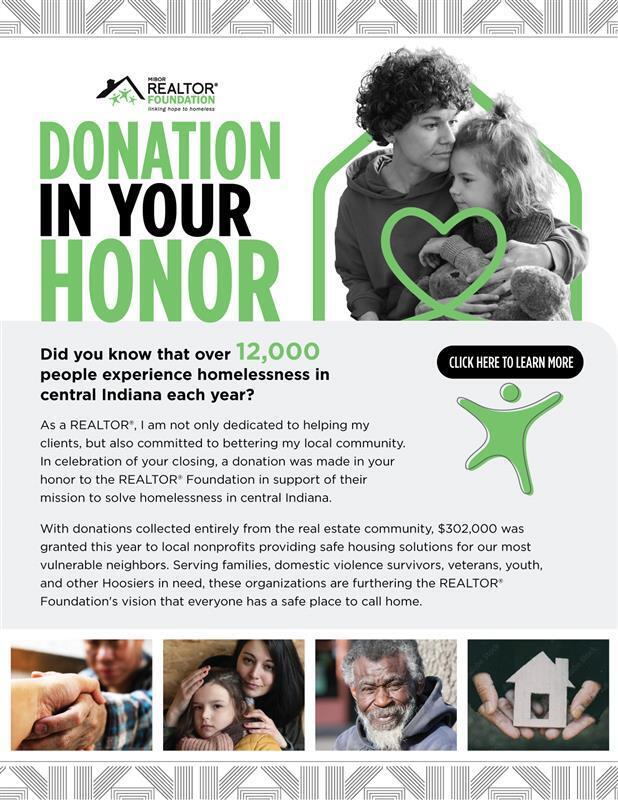 Transactional giving makes it easy for real estate professionals to give back through their everyday business. By committing to donate a portion of your commission or closing fees, you directly support the MIBOR REALTOR® Foundation’s mission to end homelessness in central Indiana.